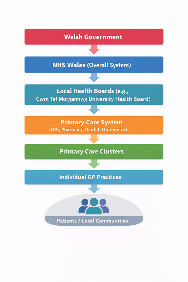 As a Welsh GP practice we work collectively with other local surgeries in clusters.